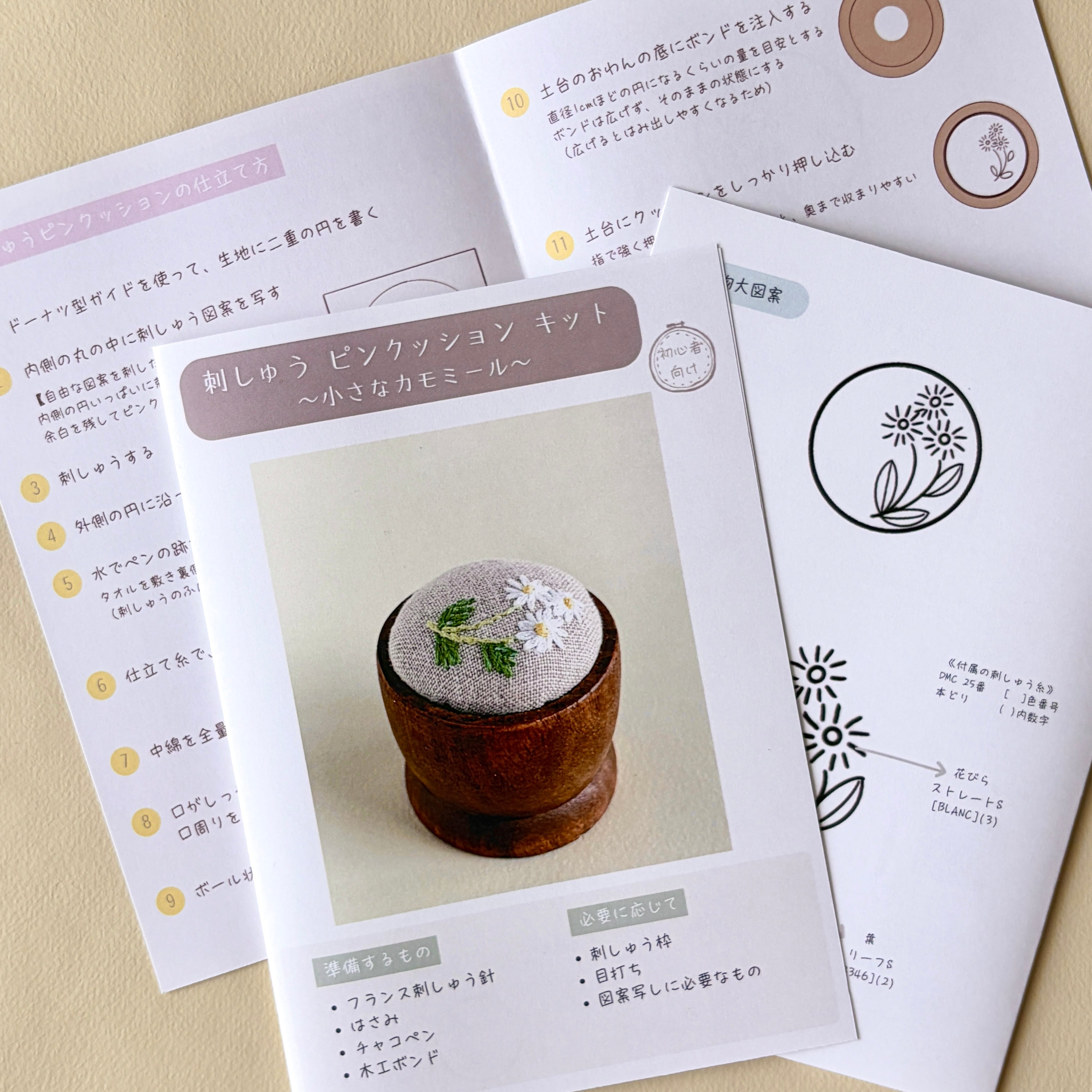 刺しゅう糸・原寸大図案・ステッチ見本も付属。