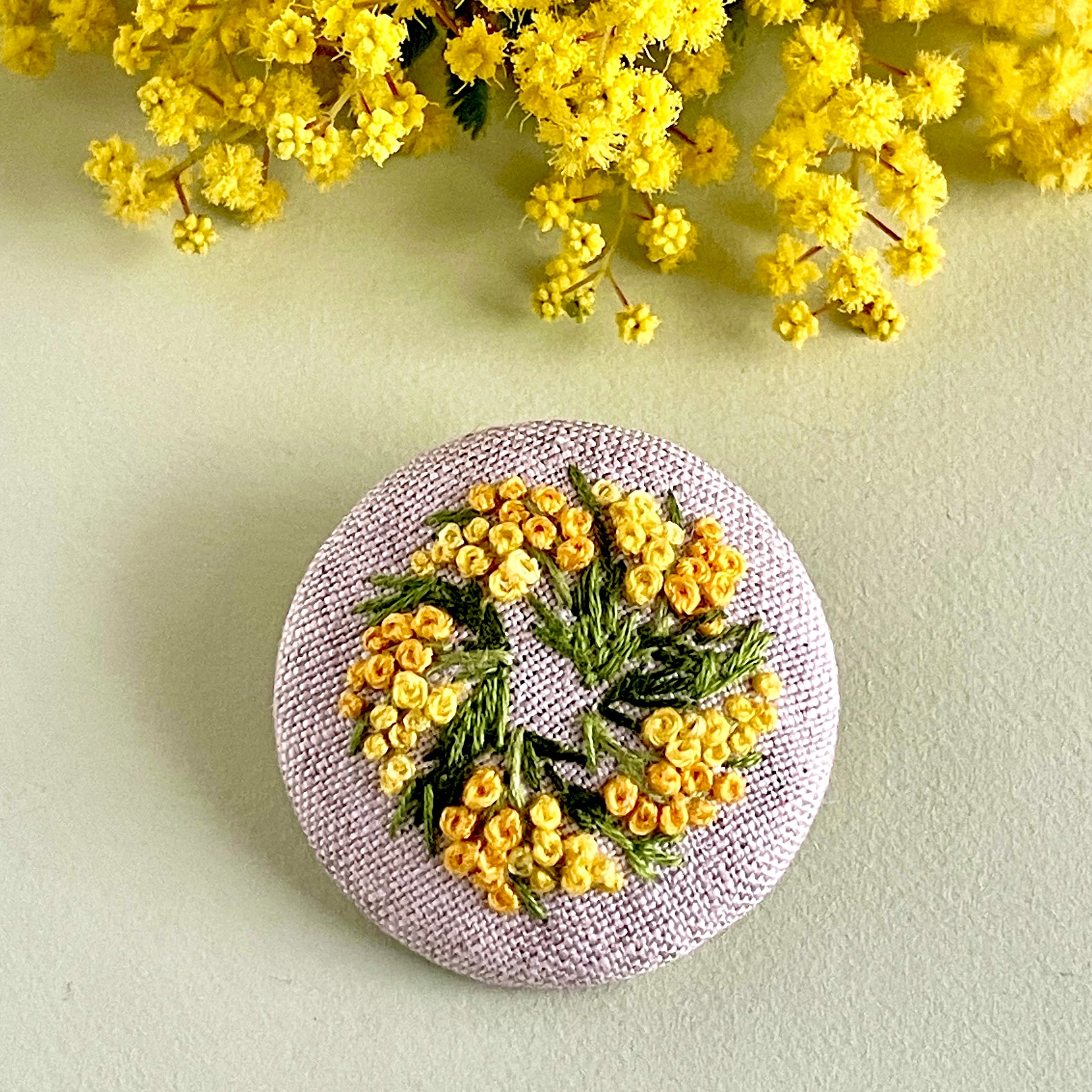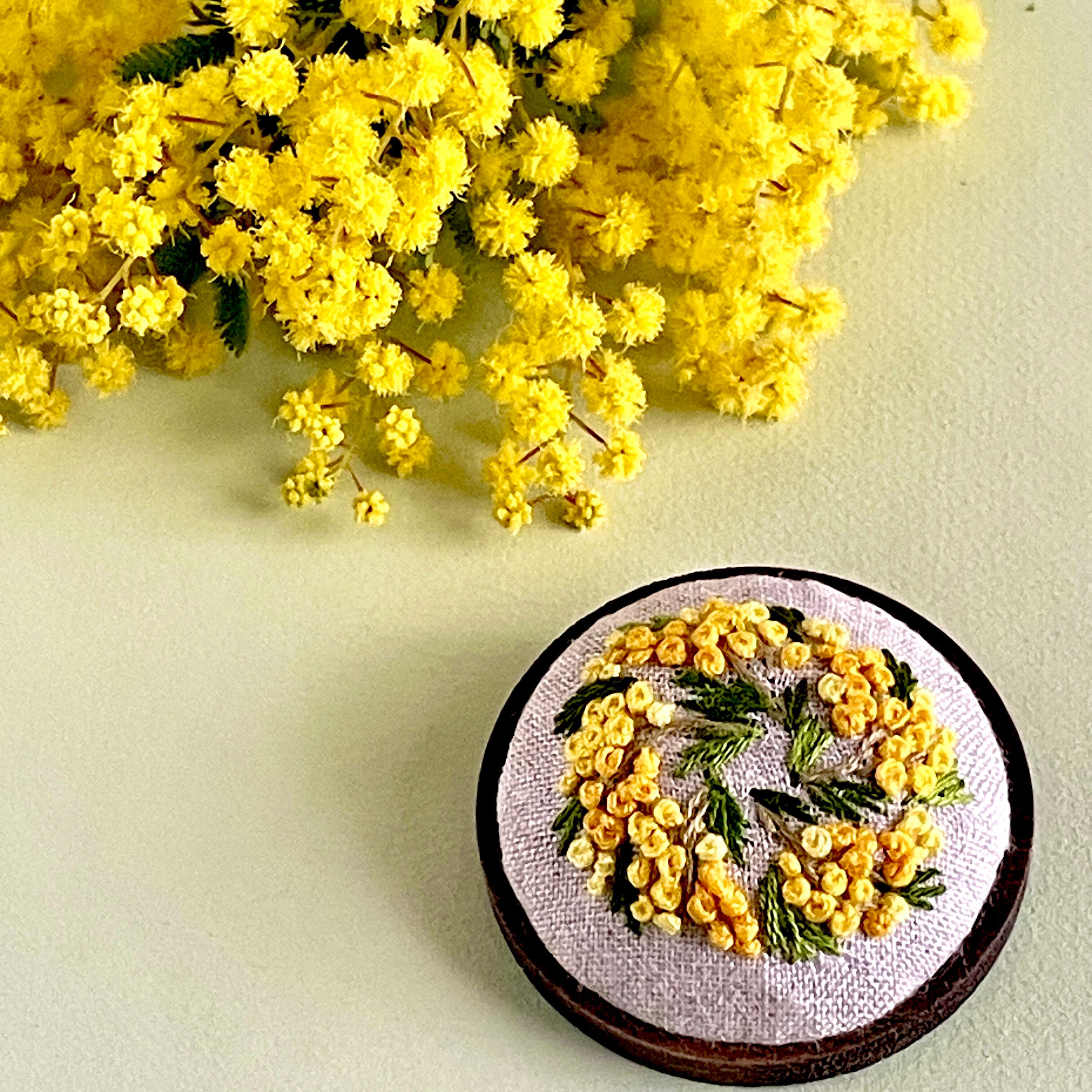 ミモザの刺繍ブローチを身につけてお出かけしませんか。