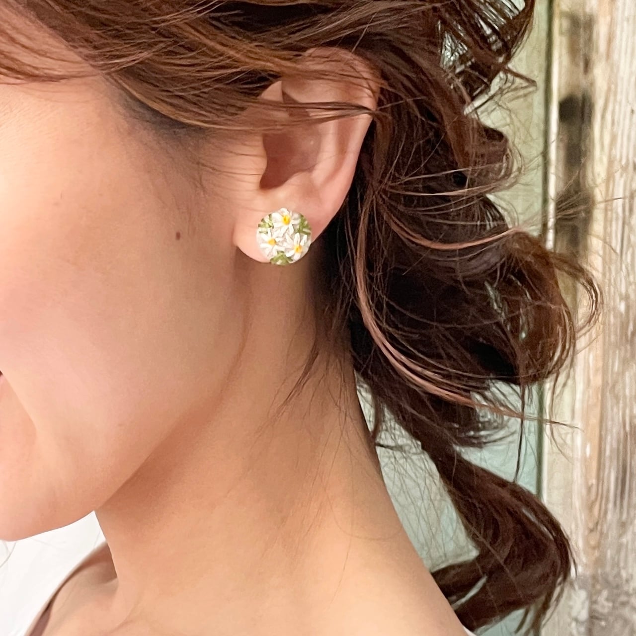 小さな花びら1枚1枚、繊細に刺繍を施した、ピアス、イヤリングです。